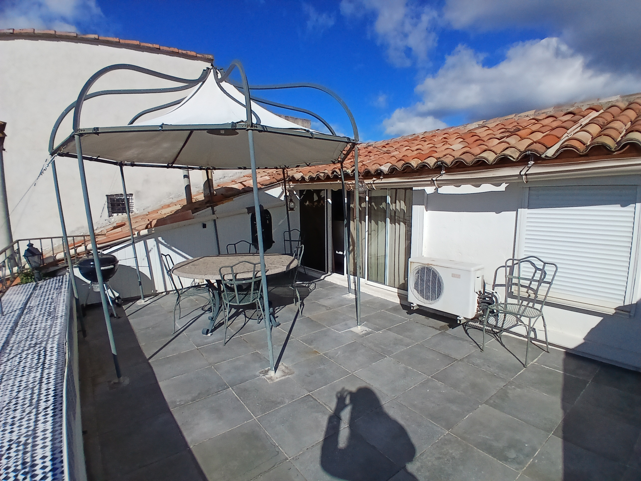 Référence agence : 6920 A Ales, coeur de ville Dans un petit immeuble avec syndic bénévole, appartement au 3ieme étage de 112 m² habitable loi carrez en duplex + balcon, terrasse tropézienne et cave de 14 m². Comprenant : hall d'entrée ouvrant sur une salle à manger et un salon avec cheminée insert, cuisine indépendante équipée donnant sur un balcon, trois chambres dont une avec dressing, salle de bain ( avec baignoire d'angle et douche ), terrasse de 23 m² avec vue dégagée. Chauffage individuel gaz de ville + climatisation réversible. A saisir pour 165 000 €Â